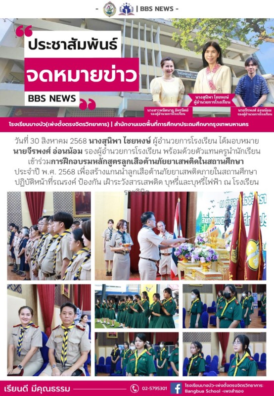 การฝึกอบรมหลักสูตรลูกเสือต้านภัยยาเสพติดในสถานศึกษา