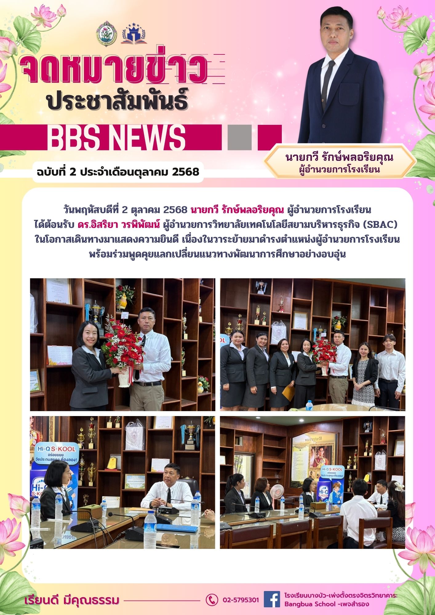 ผู้อำนวยการวิทยาลัยเทคโนโลยีสยามบริหารธุรกิจ (SBAC) ในโอกาสเดินทางมาแสดงความยินดี เนื่องในวาระย้ายมาดำรงตำแหน่งผู้อำนวยการโรงเรียน
