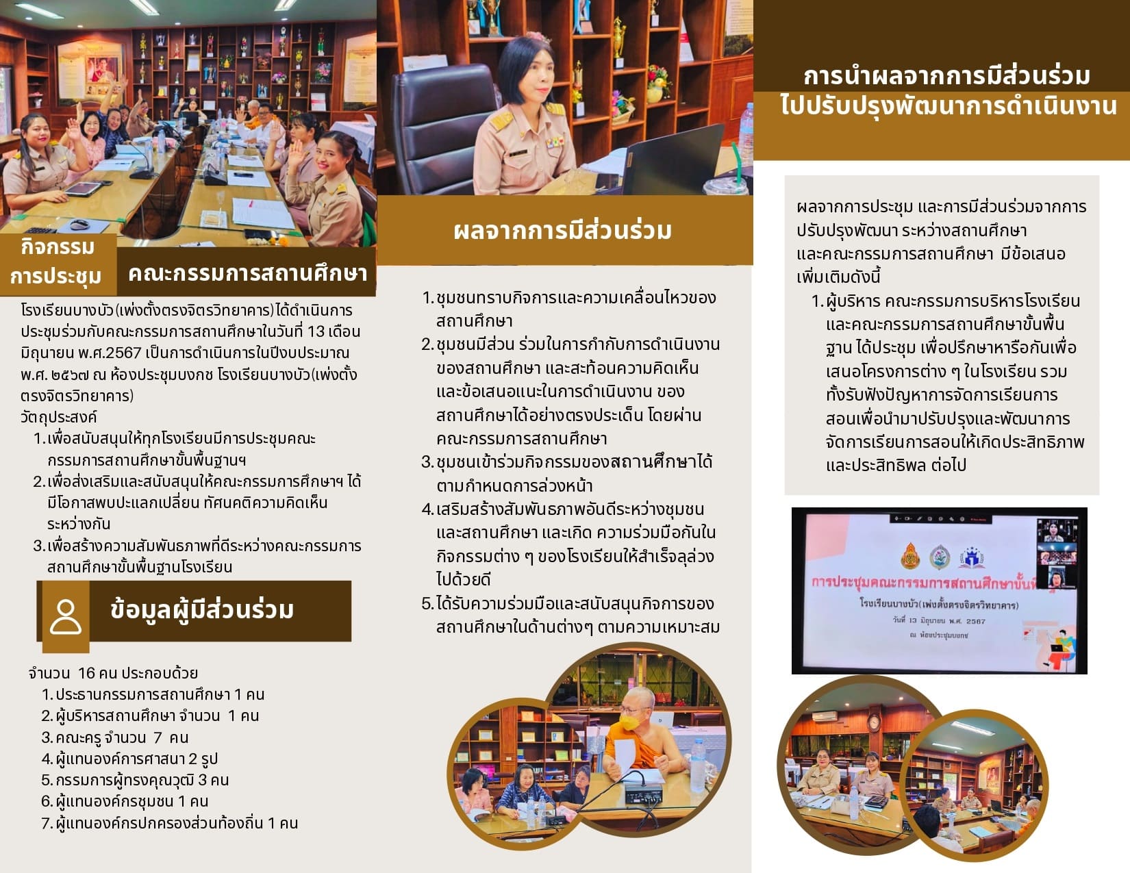 รายงานการประชุมคณะกรรมการสถานศึกษาขั้นพื้นฐานโรงเรียนบางบัว |