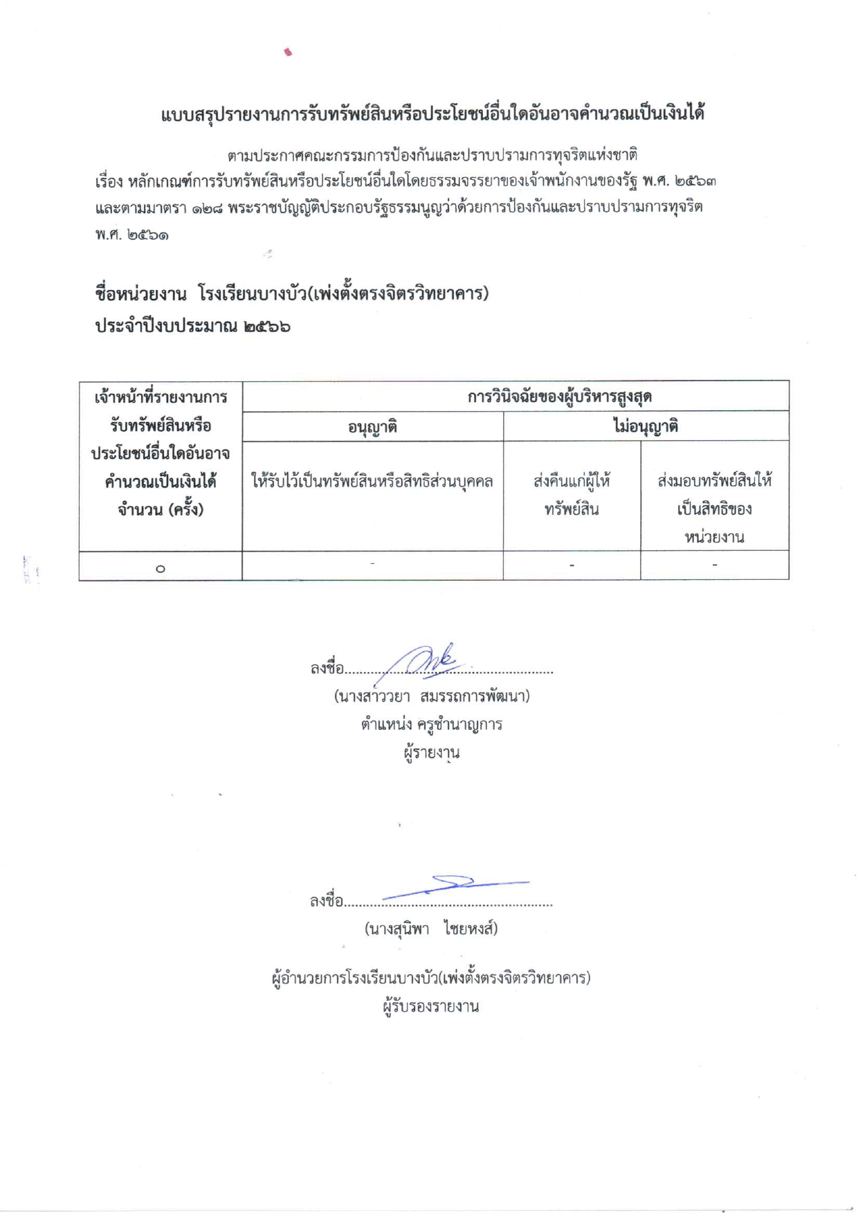 O29 : รายงานการรับทรัพย์สินหรือประโยชน์อื่นใดโดยธรรมจรรยา